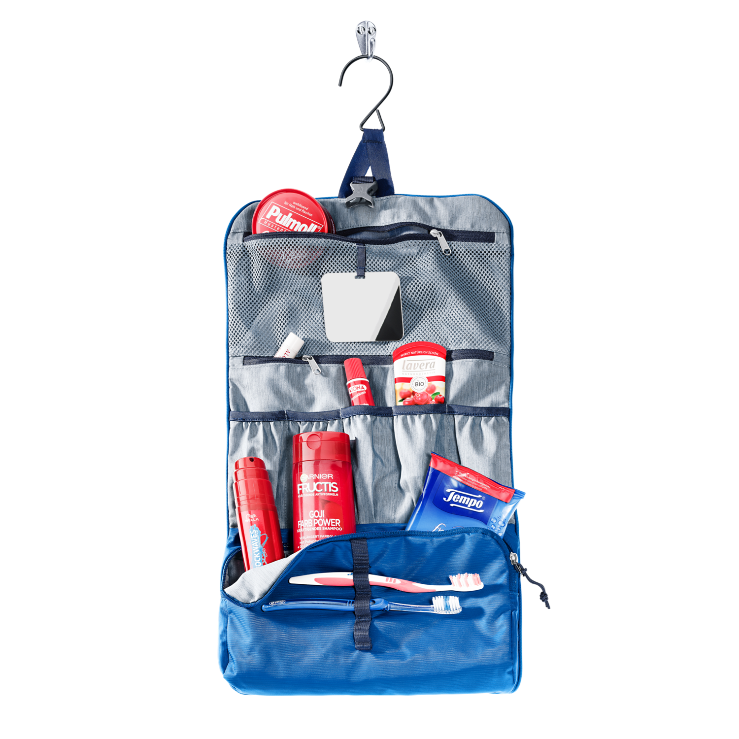 - 1 bolsillo de malla y 1 bolsillo de tela con cremallera de formato plano