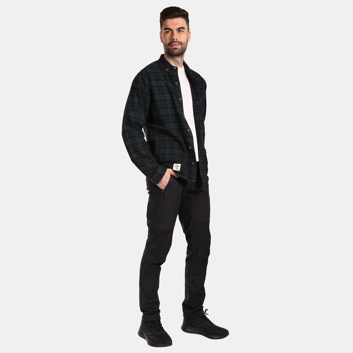 Esta camisa de franela para hombre no debería faltar en el vestuario de ningún entusiasta de las actividades al aire libre o la montaña, ni tampoco entre los hombres que prefieren un estilo más deportivo para el día a día. El suave material de franela de algodón es agradablemente cálido y también puede utilizarse como capa base o intermedia para actividades al aire libre o de ocio de bajo impacto. El corte clásico con cierre de botones, cuello y bolsillo es una elección fiable. Para que la camisa se ajuste a los requisitos de un corte holgado o estándar, al elegir la talla tenga en cuenta la propiedad natural del algodón, a saber, su encogimiento de aprox. un 3-5%. Siga atentamente las instrucciones de mantenimiento.