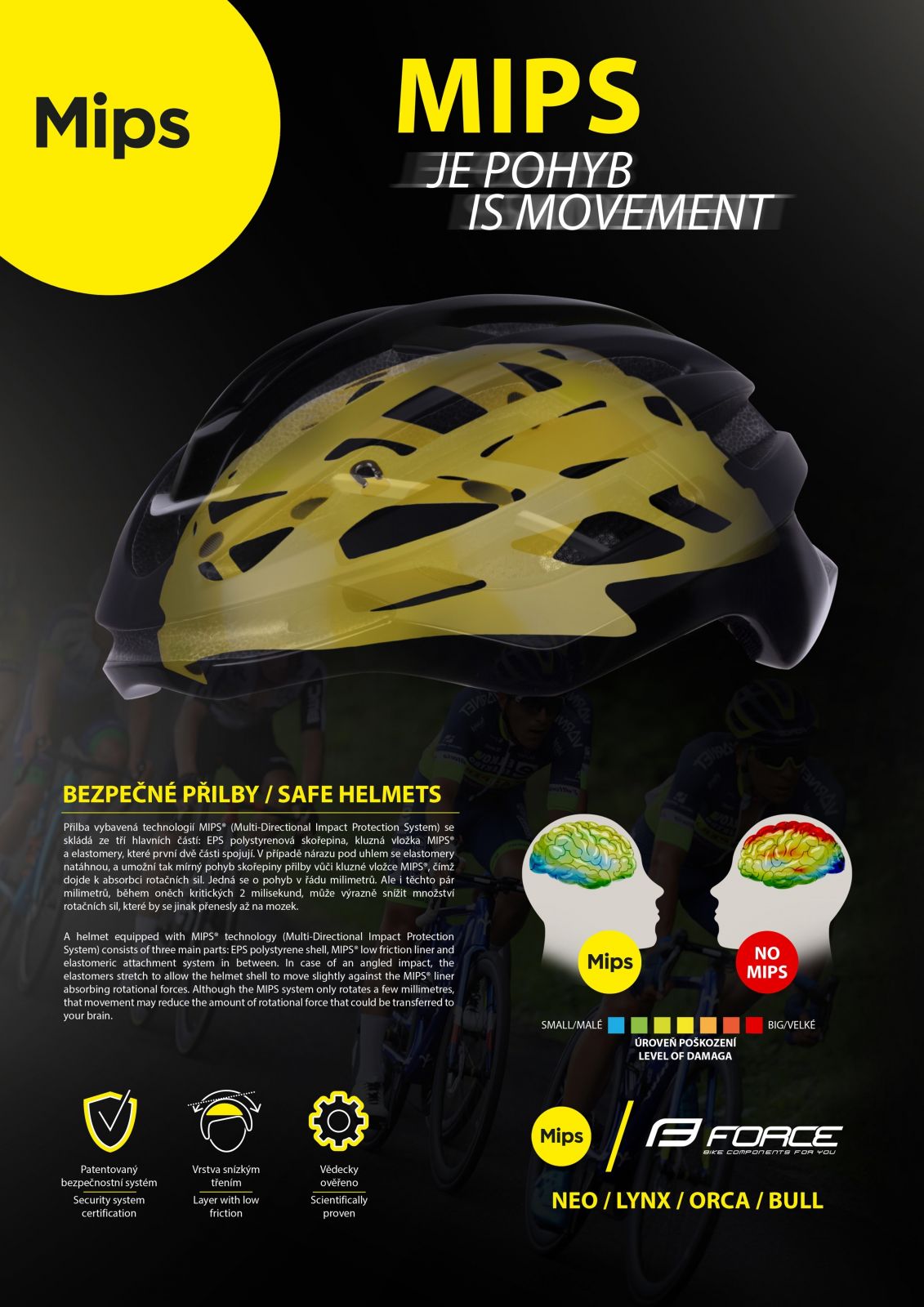 • El sistema MIPS, utiliza una carcasa elástica fijada en el interior del casco y así minimiza la energía rotacional generada al caer sobre la cabeza, aumentando así el nivel de protección