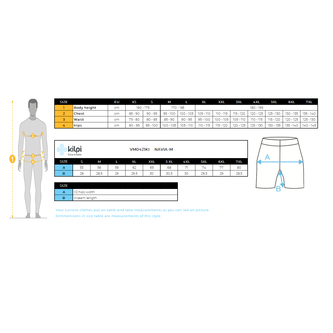 Los pantalones cortos Kilpi NAVIA-M para hombre son ideales para el uso diario o para actividades al aire libre y de ocio. El material SIBERIUM es resistente, transpirable y elástico. El clásico cierre de cremallera y botón se complementa con trabillas y cintura elástica. Los pantalones cortos están diseñados con un total de cuatro bolsillos, incluido uno con cremallera en el muslo. El largo por encima de la rodilla y el refuerzo en la entrepierna ofrecen una gran libertad de movimientos.