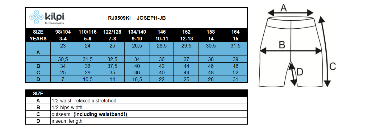 • El pantalón corto Kilpi JOSEPH-JB para niño, largo hasta la mitad del muslo, es ideal para el día a día o para actividades deportivas en el caluroso verano.