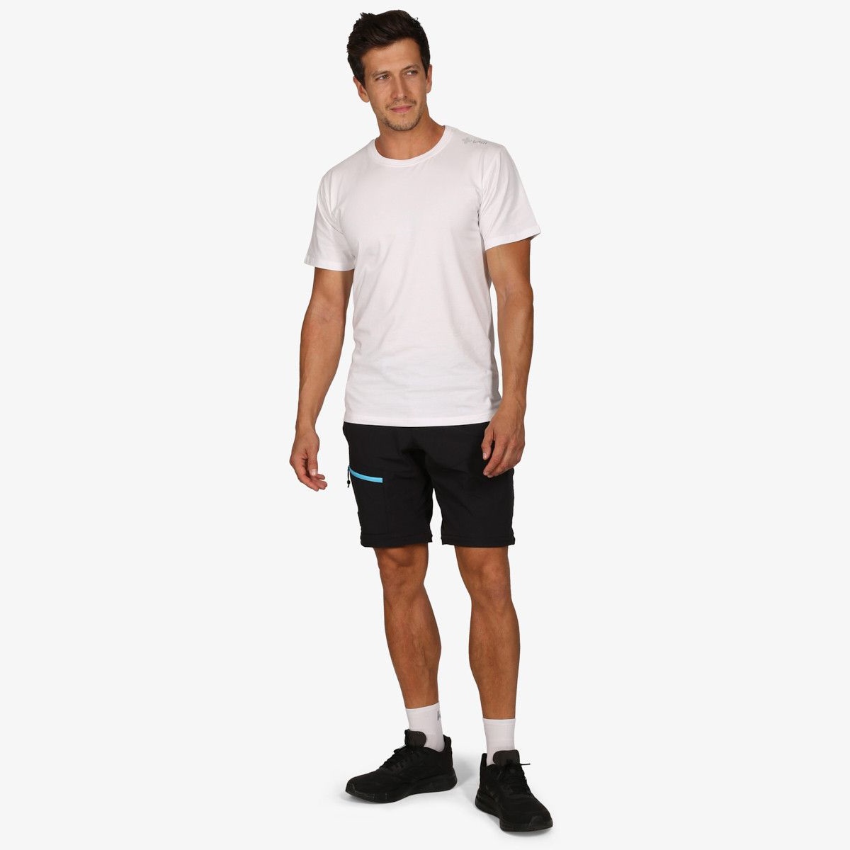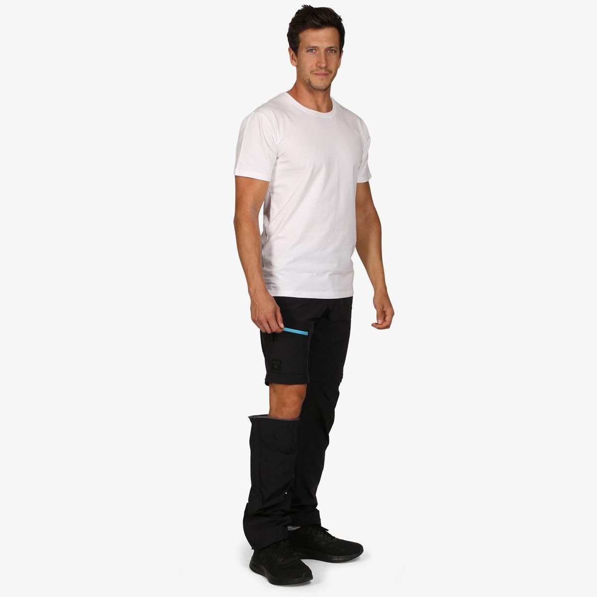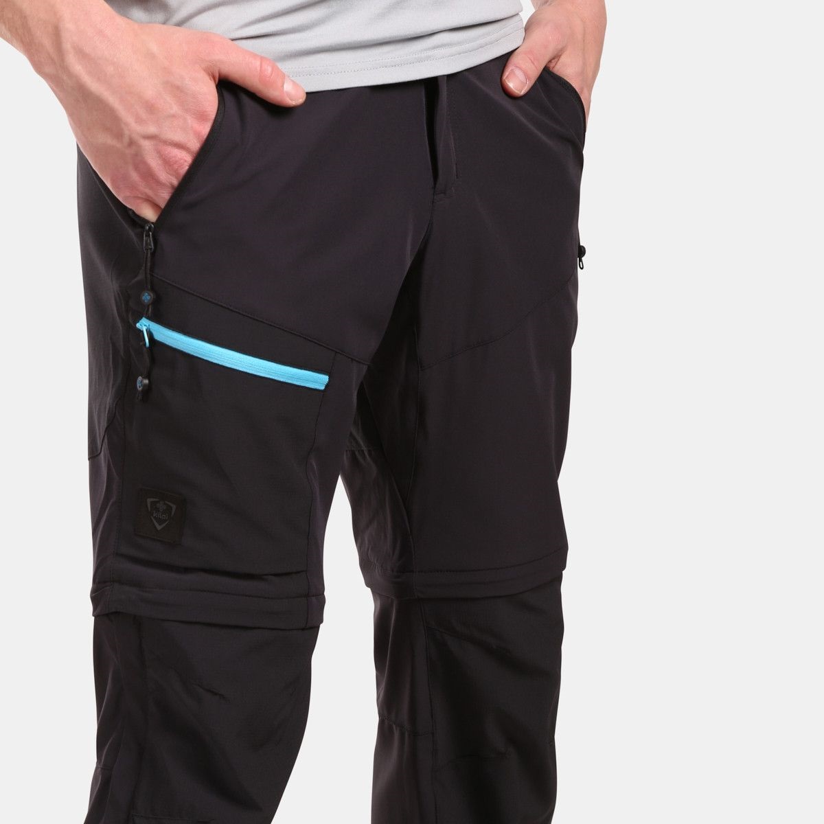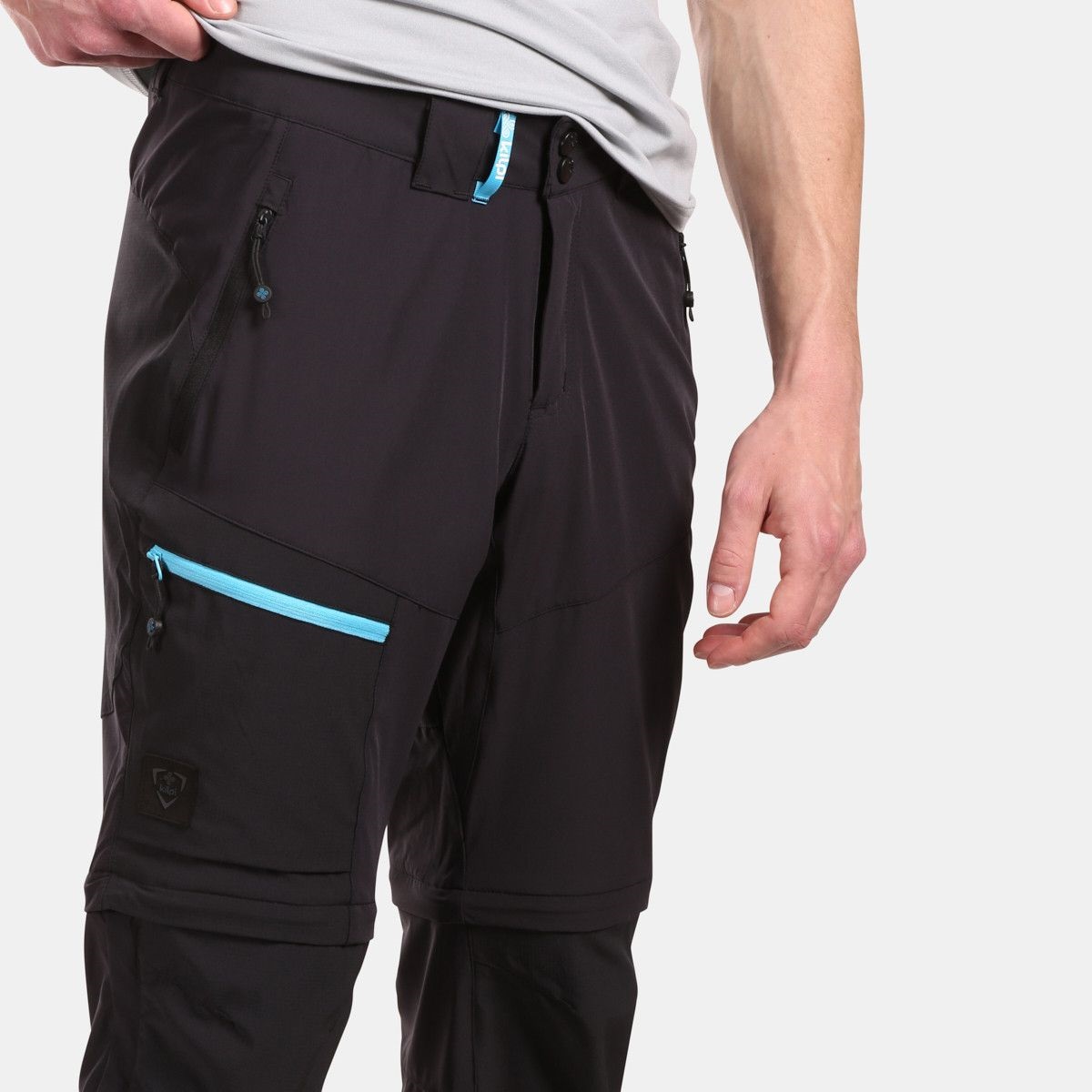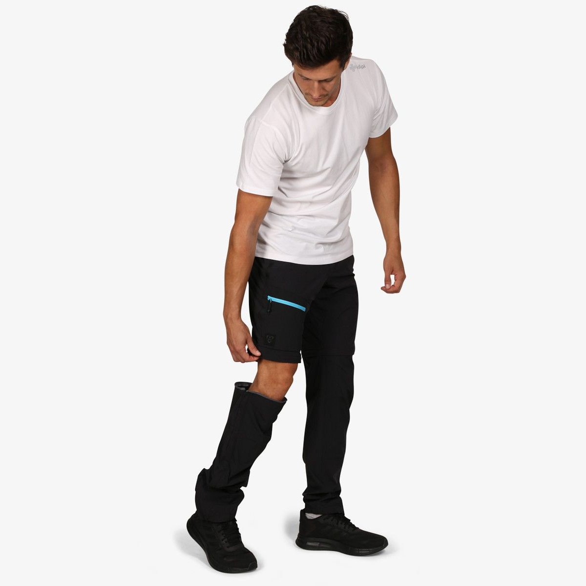 Los pantalones 2 en 1 Kilpi HOSIO-M están diseñados para actividades al aire libre, senderismo o para el día a día. Están hechos de material SIBERIUM, que es muy ligero, transpirable y muy elástico. Su principal característica es la posibilidad de separar las perneras por encima de las rodillas, lo que permite convertir el pantalón en un pantalón corto. Esta característica resulta muy práctica cuando se viaja o se practica senderismo durante todo el día. La zona de las rodillas y las nalgas está reforzada con un material ripstop más duro y resistente a la abrasión. Los pantalones tienen tres bolsillos con cremallera y un cierre clásico con trabillas. Los bajos de las perneras tienen un acabado elástico y un gancho metálico para sujetar los pantalones al calzado de exterior.