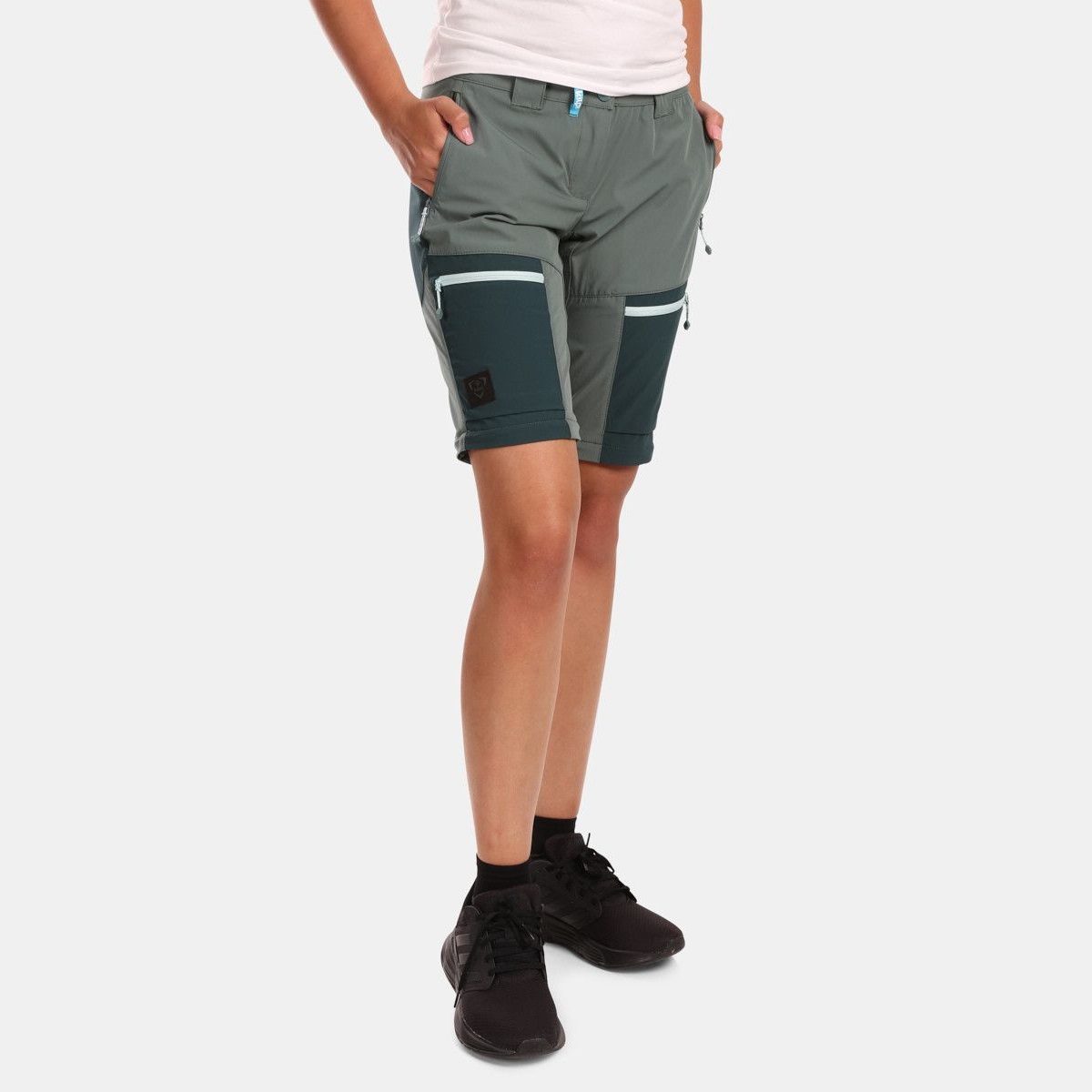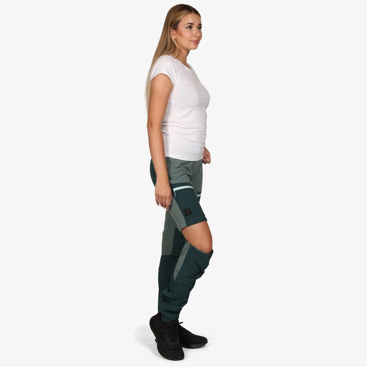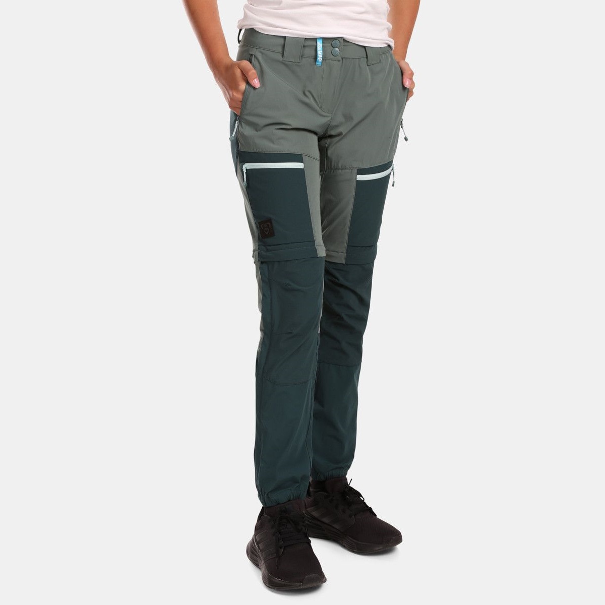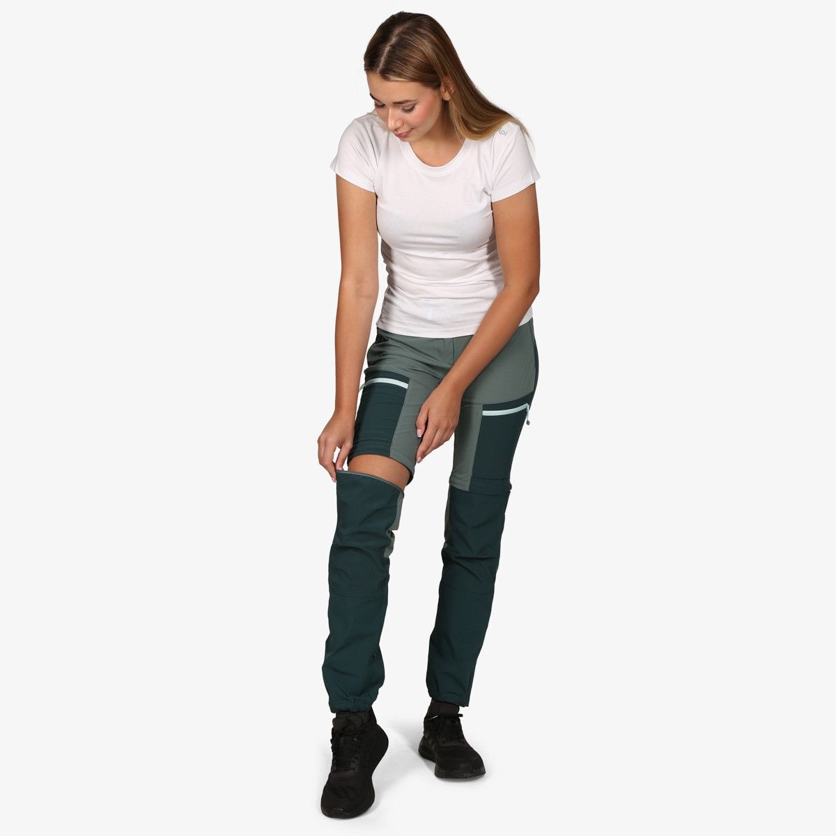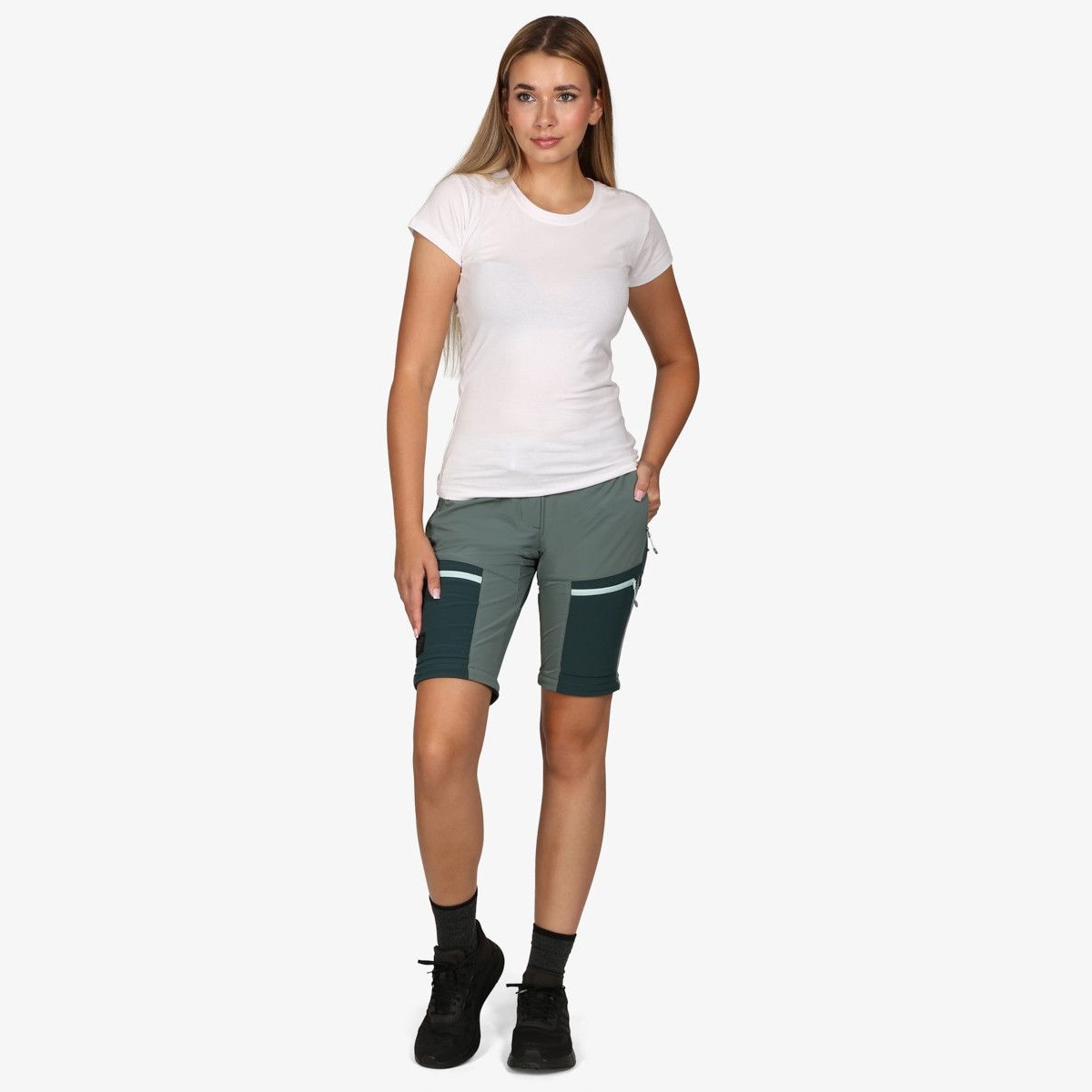 Los pantalones 2 en 1 Kilpi HOSIO-W están diseñados para actividades al aire libre, senderismo o para el día a día. Están hechos de material SIBERIUM, que es muy ligero, transpirable y muy elástico. Su principal característica es la posibilidad de separar las perneras por encima de las rodillas, lo que permite convertir el pantalón en un pantalón corto. Esta característica resulta muy práctica cuando se viaja o se practica senderismo durante todo el día. La zona de las rodillas y las nalgas está reforzada con un material ripstop más duro y resistente a la abrasión. Los pantalones tienen cuatro bolsillos y un cierre clásico con trabillas. Los bajos de las perneras tienen un acabado elástico y un gancho metálico para sujetar los pantalones al calzado de exterior.