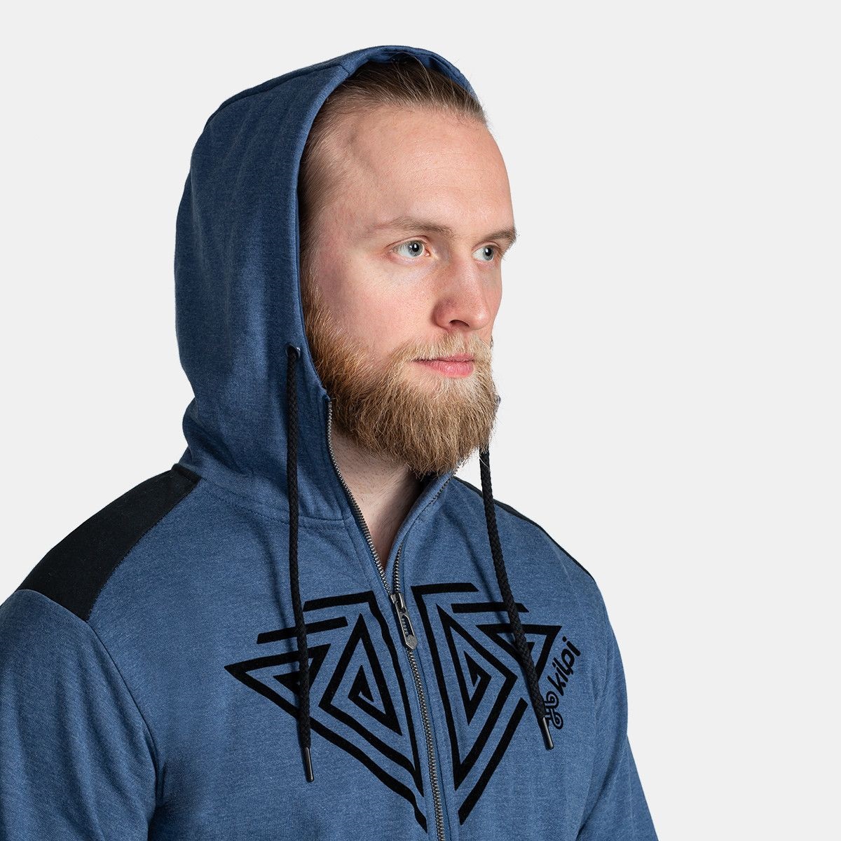 La sudadera de algodón con cremallera completa para hombre Kilpi ADELAN-M tiene dos bolsillos, capucha con cordón y un original estampado en el pecho. El elegante diseño se combina con unos parches de piel sintética.