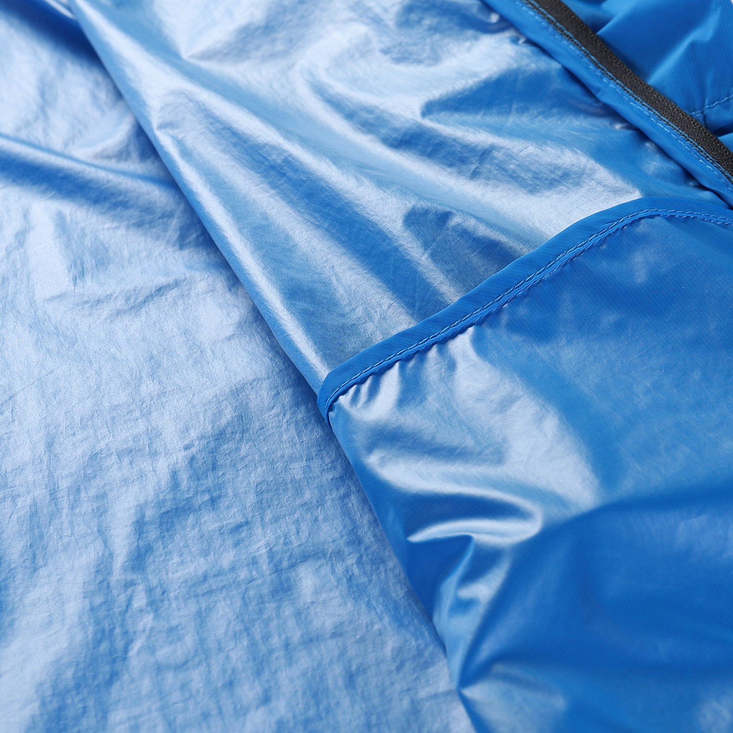 Es un material muy ligero con un volumen mínimo, resistente al viento y que mantiene una excelente permeabilidad al vapor de agua y, por tanto, a la transpiración.