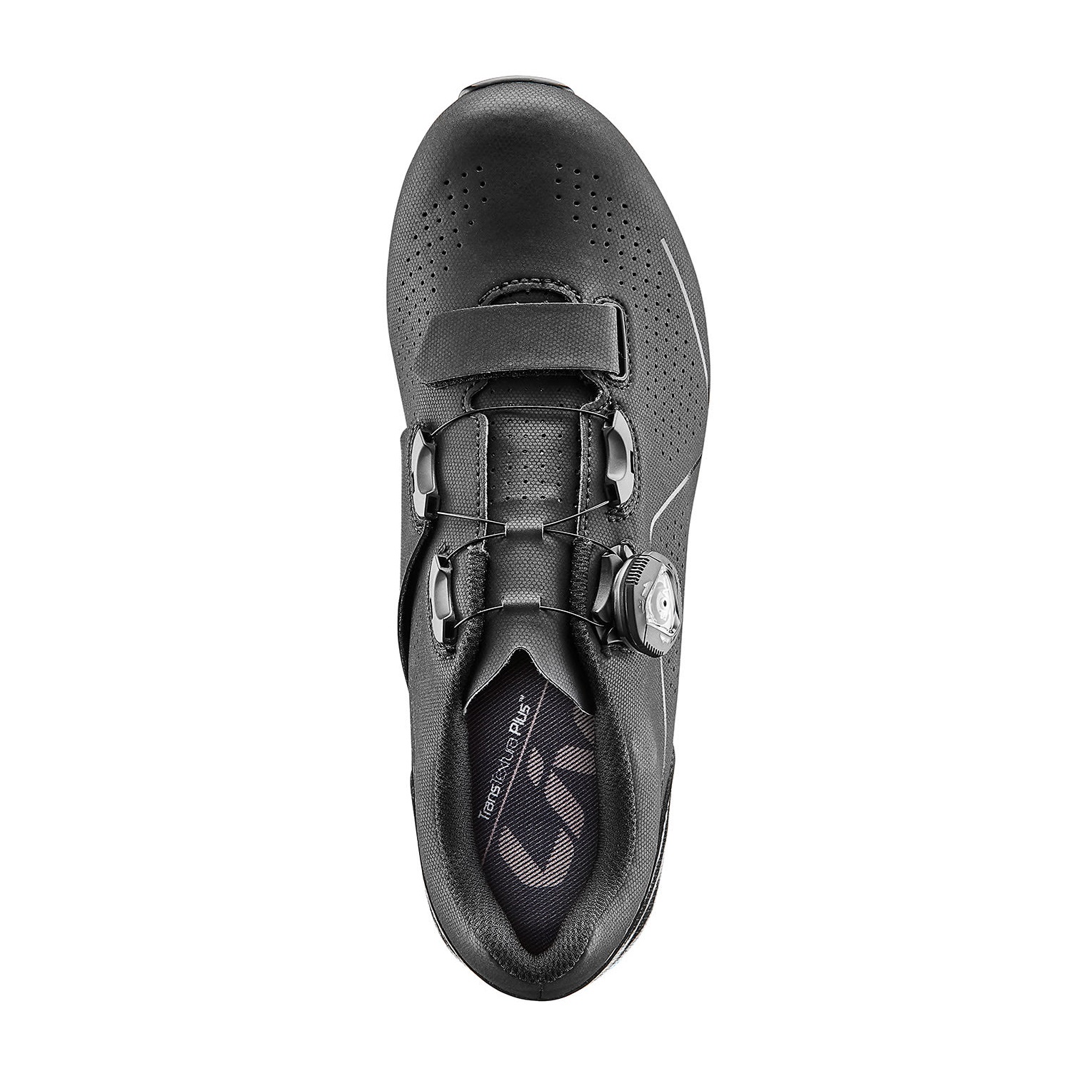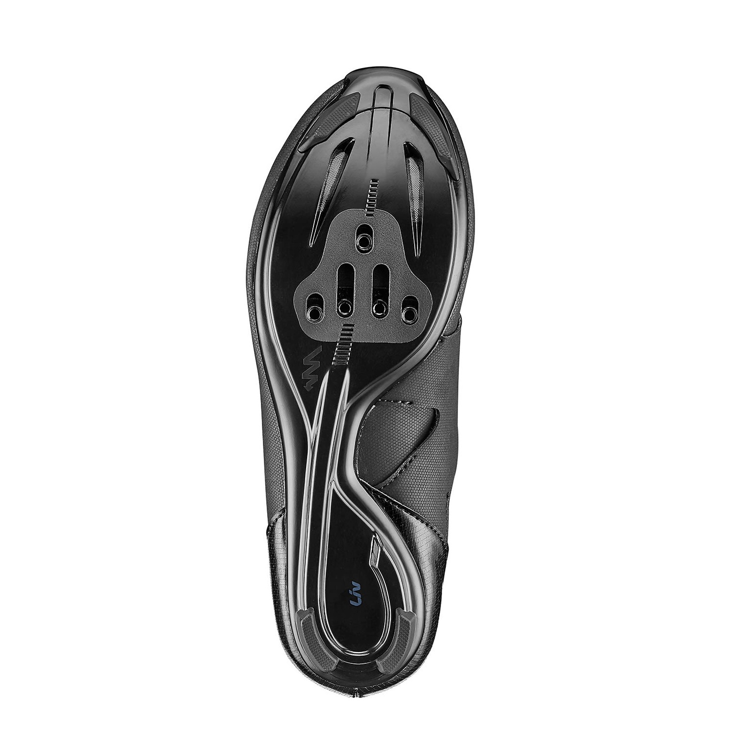 • Suela exterior de tecnología Motion Efficiency System y de fibra de carbono (30% de fibra de vidrio, 70% nailon) mantiene el antepié rígido al tiempo que permite el movimiento torsional de la parte posterior y media del pie.